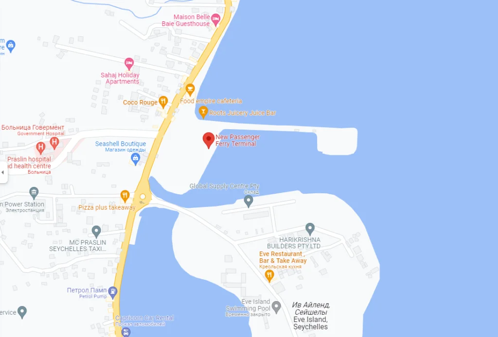 С острова Маэ паром отправляется из причала города Виктория и прибывает на пирс острова Праслин. Оттуда путь лежит к острову Ла-Диг.