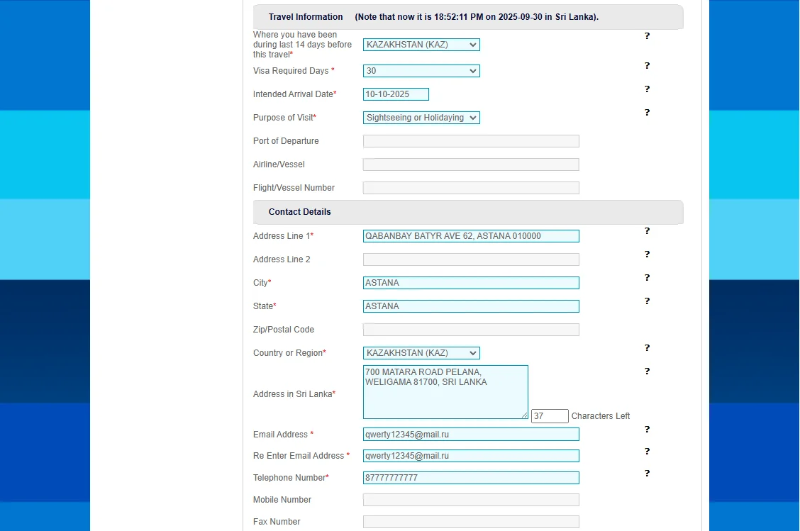 {Инструкция по заполнению разрешения на въезд на Шри-Ланку для граждан Казахстана}