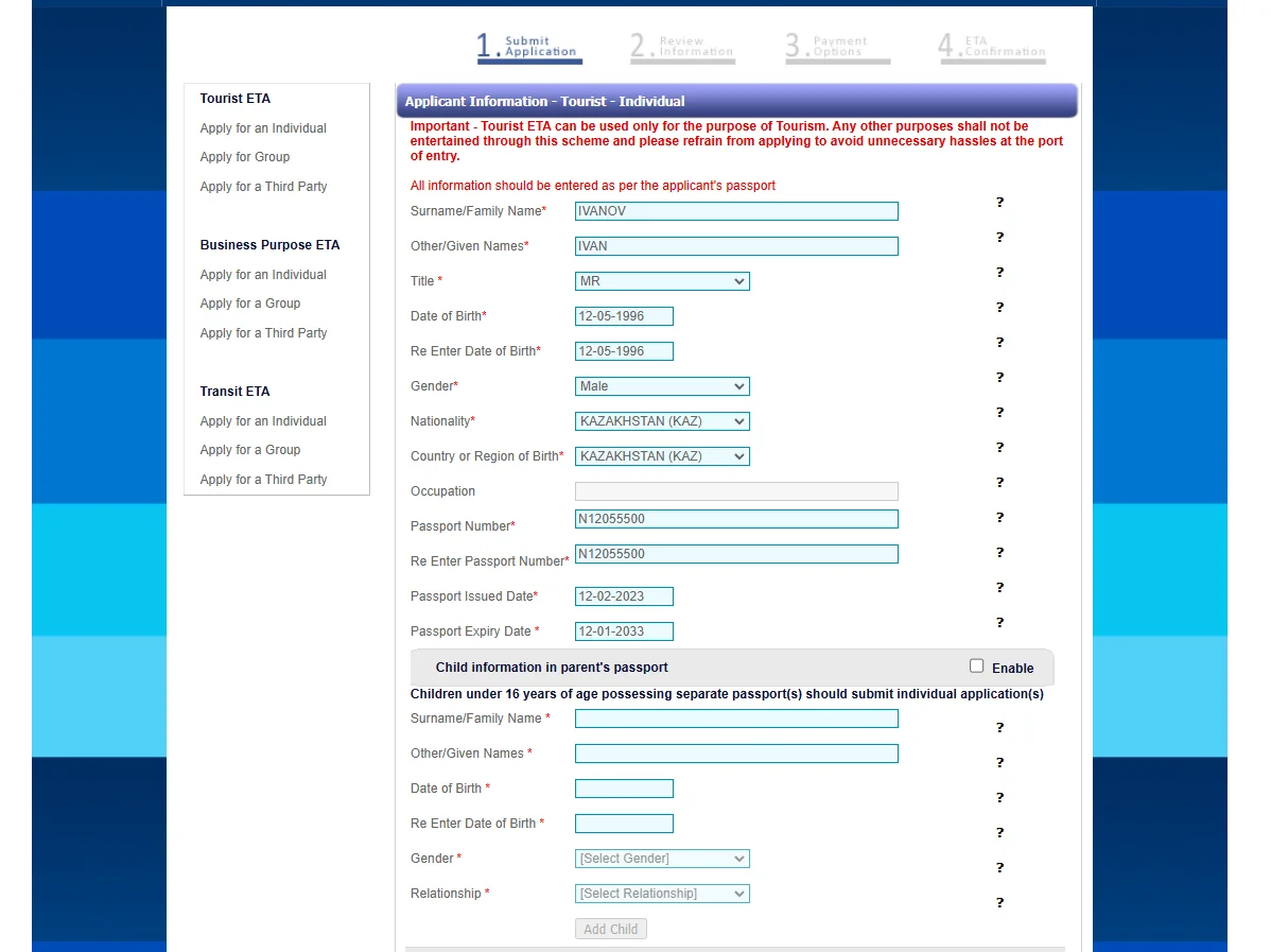 Шаг 4 – кликнуть «Apply for Individual» в разделе Tourist ETA